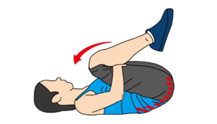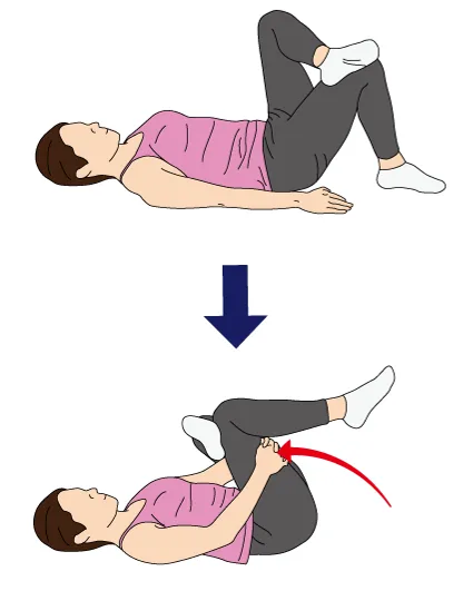 1. 仰向けに寝て、両膝を胸に引き寄せ、10秒ほどキープします。